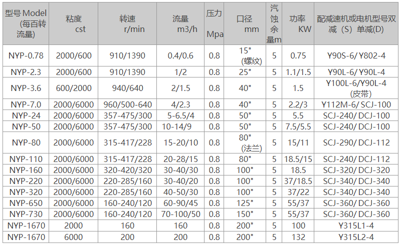 NYP內嚙合高粘度轉子泵適用介質溫度:-10℃ —200℃NYP內齒合高粘度轉子泵適用介質粘度:1.0cSt— 300,000cS?!?/div>